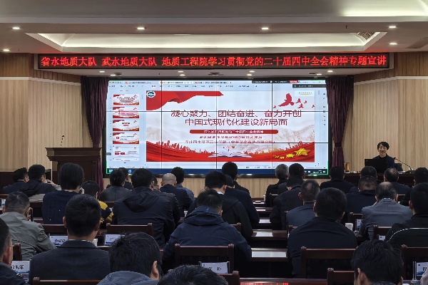 11月14日,武水地质大队联合省水地质大队、地质工程院举办学习贯彻党的二十届四中全会精神专题宣讲,邀请局基层理论宣讲团成员孙剑峰授课。