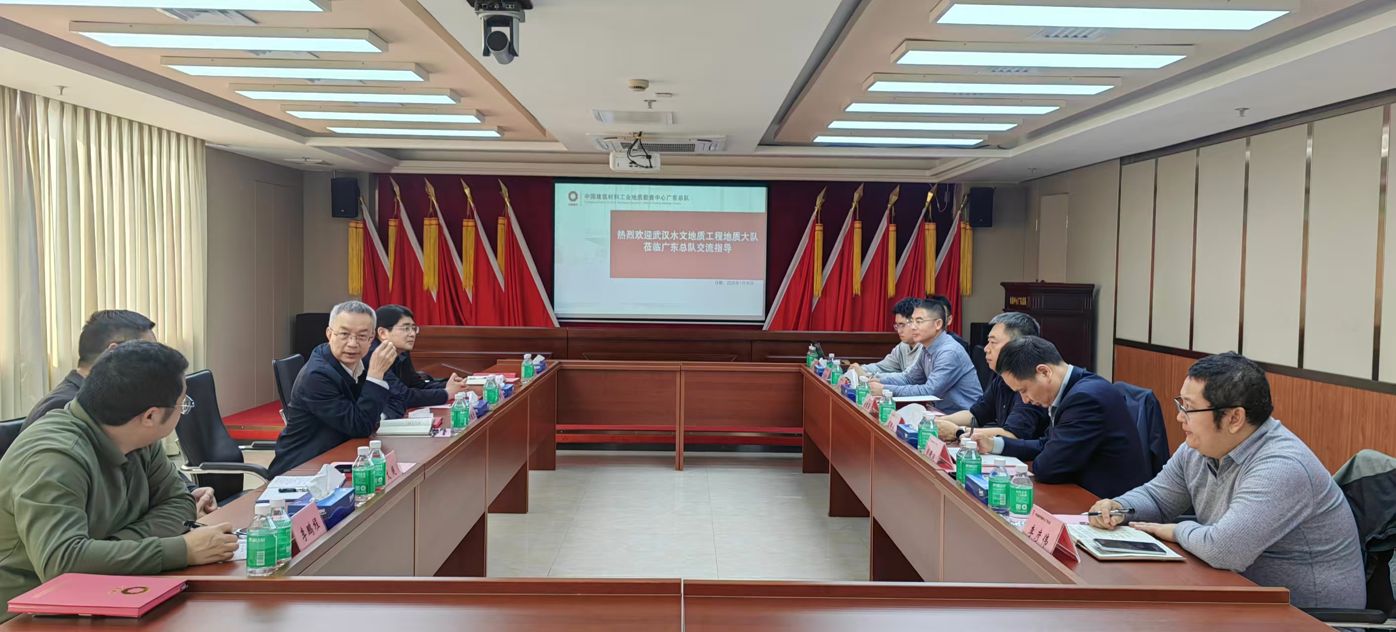 1月30日,武水地质大队党委书记、队长欧阳继胜一行前往中国建筑材料工业地质勘查中心广东总队座谈交流。